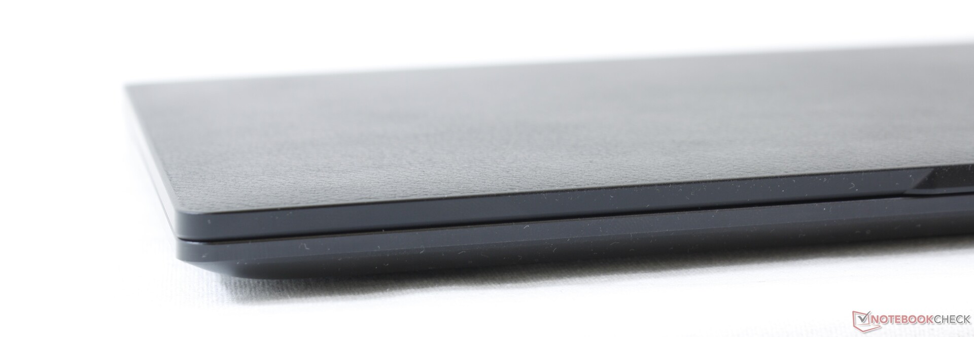 Das Yoga Slim 9i hat zwei besondere physische Merkmale, die es von ähnlichen Modellen unterscheiden. Erstens ist der Deckel außen nicht aus Kunststoff oder glattem Metall, sondern von echtem Leder überzogen. Das sieht gut aus und ist auch haptisch gesehen eine gute Wahl. Das Leder fühlt sich luxuriös an und Fingerabdrücke bleiben unsichtbar. Es würde uns nicht überraschen, wenn Lenovo in Zukunft auch bei anderen Modellen ähnliche Lederoptionen anbieten würde. Die Ränder und Ecken des Deckels bestehen immer noch aus Metall, um das Display zu schützen.