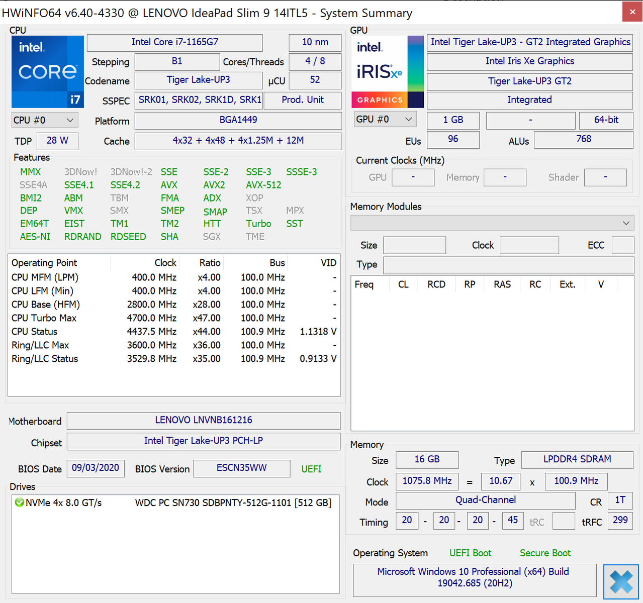 | Lenovo IdeaPad Slim 9i 14ITL5 i7-1165G7, Iris Xe G7 96EUs, WDC PC SN730 SDBPNTY-512G, IPS, 3840x2160, 14" | Lenovo Yoga 9i 14ITL5 i5-1135G7, Iris Xe G7 80EUs, Samsung SSD PM981a MZVLB256HBHQ, IPS, 1920x1080, 14" | MSI Prestige 14 Evo A11M-005 i7-1185G7, Iris Xe G7 96EUs, Phison 512GB SM280512GKBB4S-E162, IPS-Level, 1920x1080, 14" | Huawei MateBook 14 2020 Intel i7-10510U, GeForce MX350, Lite-On CA5-8D512, IPS LED, 2160x1440, 14" | Asus ZenBook 14 UX425EA i7-1165G7, Iris Xe G7 96EUs, Intel SSD 660p 1TB SSDPEKNW010T8, IPS, 1920x1080, 14" | Lenovo Yoga Slim 7-14ARE R7 4800U, Vega 8, Samsung SSD PM981a MZVLB512HBJQ, IPS, 1920x1080, 14" | |