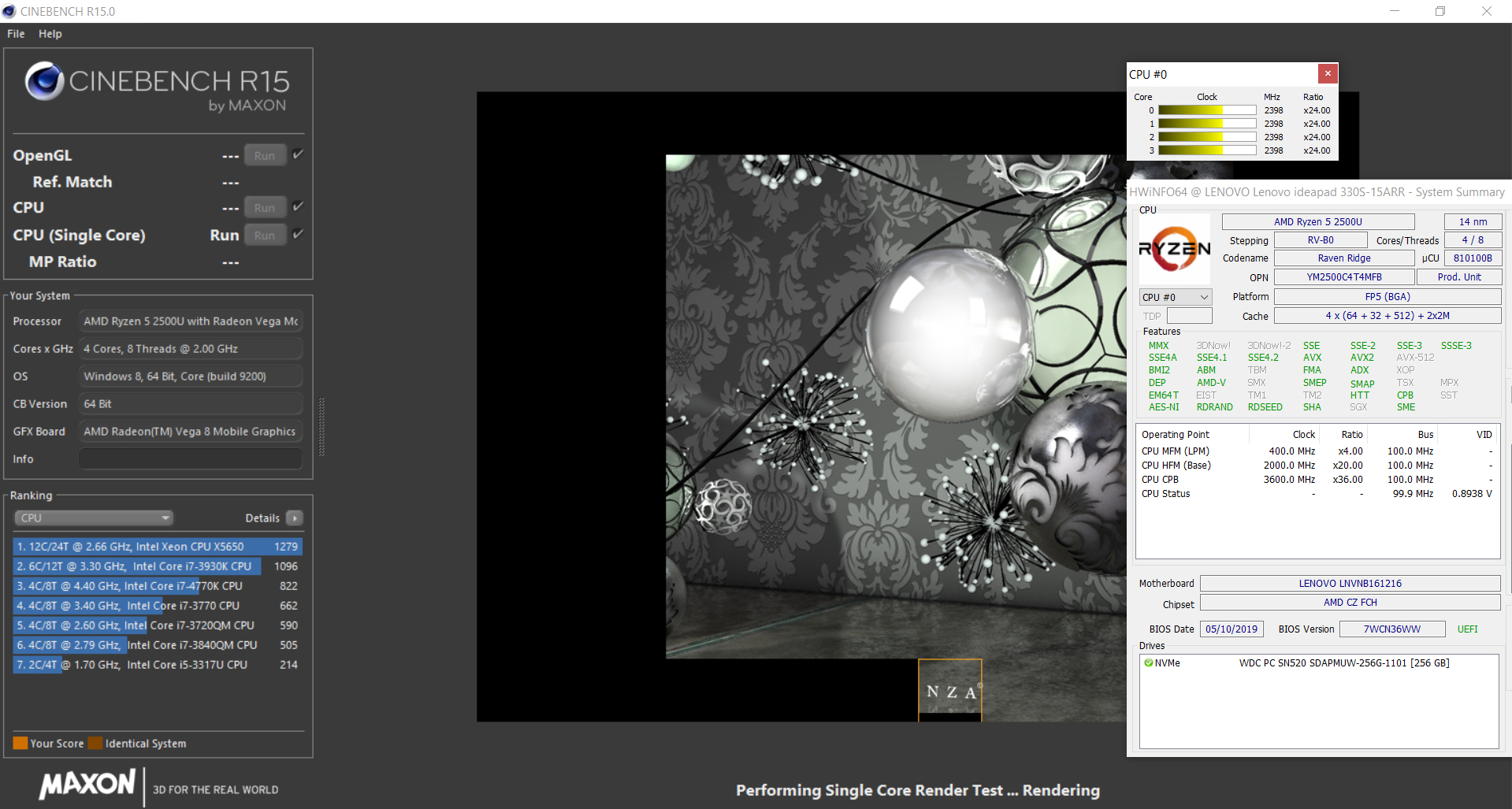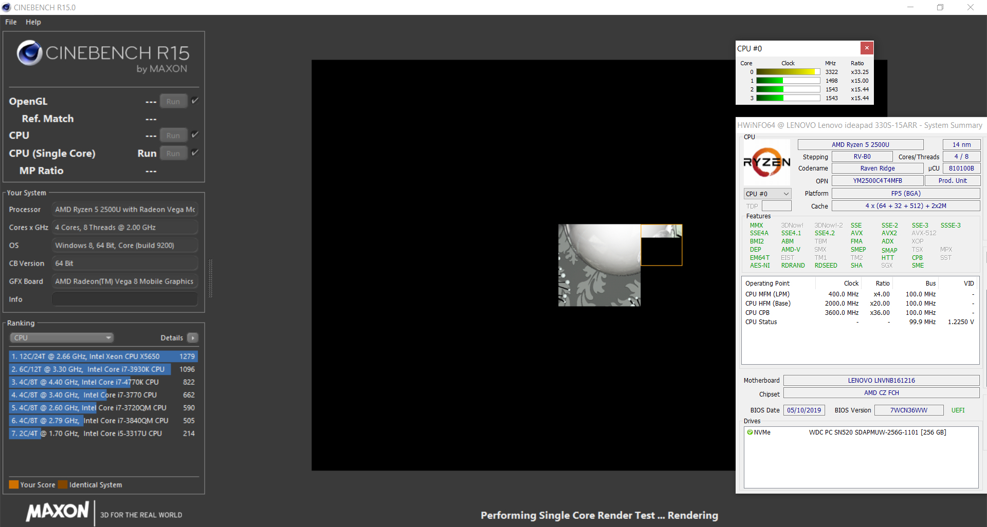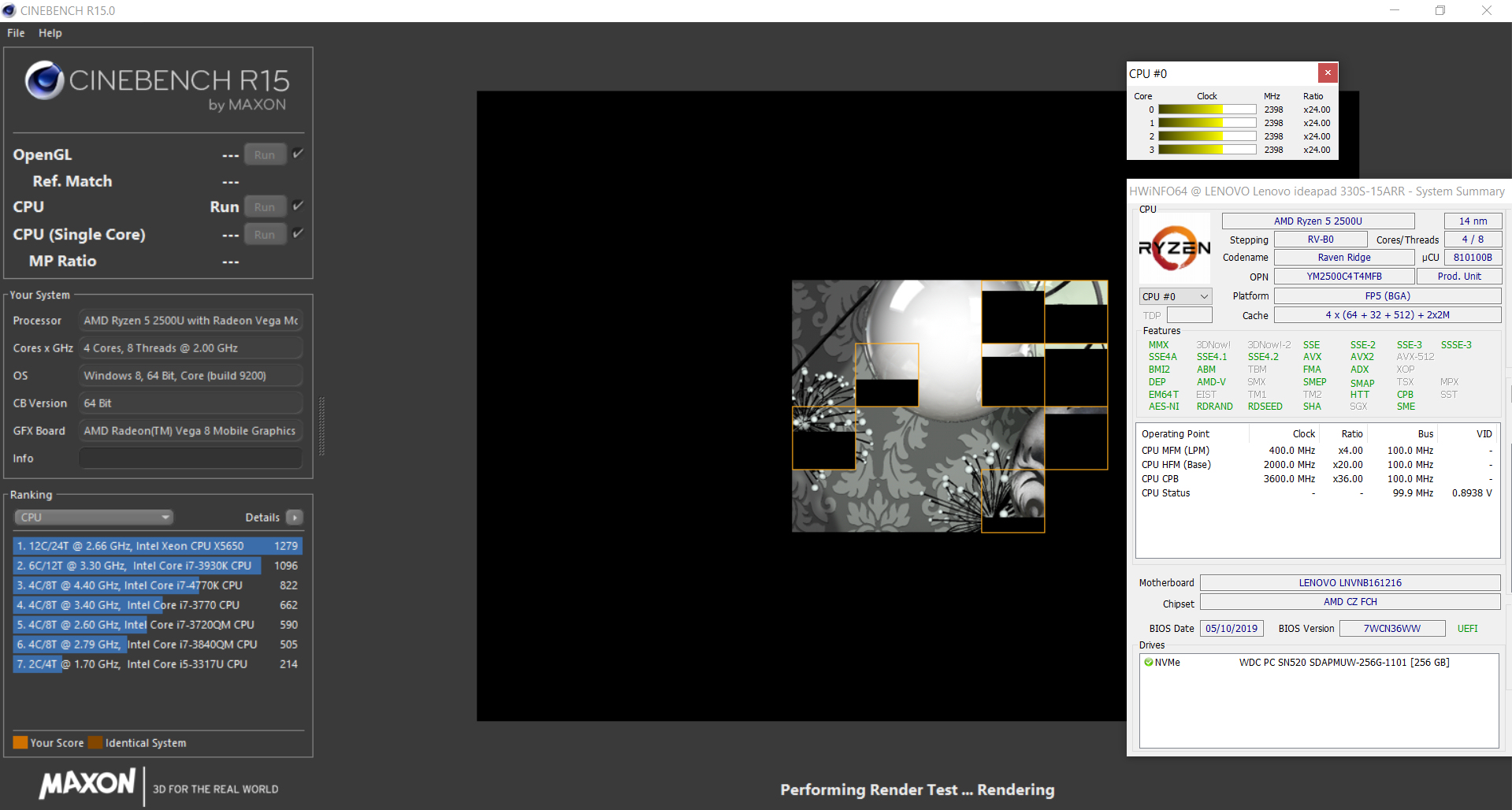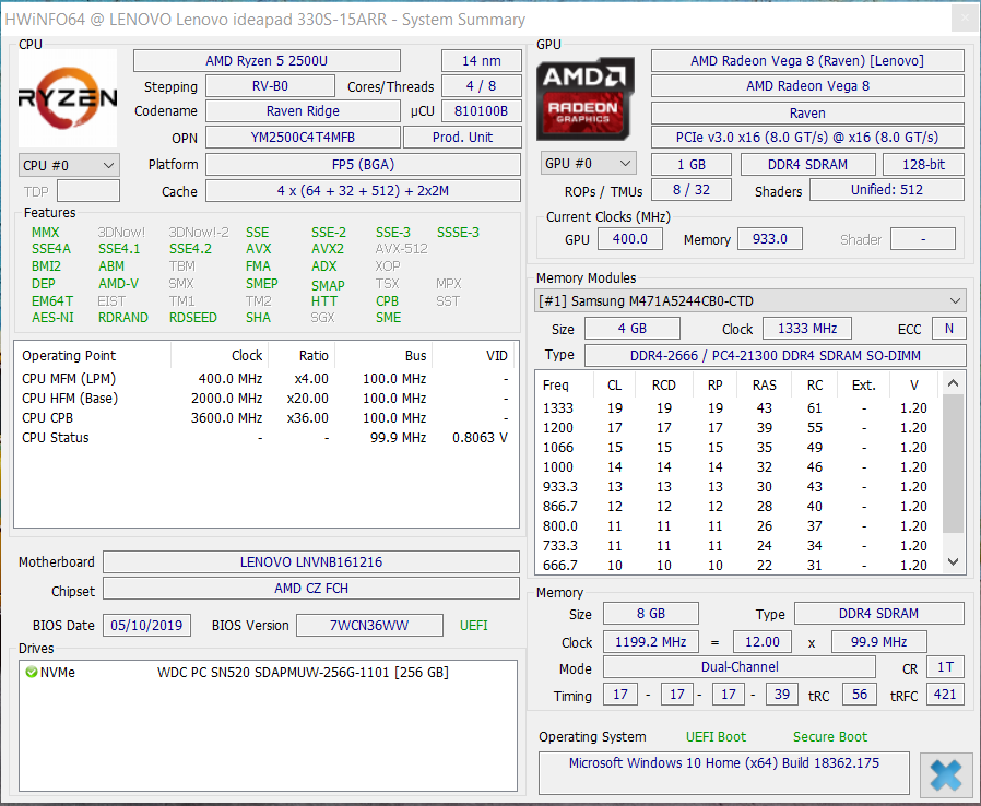 An Bord des Ideapads befindet sich eine Ryzen 5 2500U (Raven Ridge) APU der Firma AMD, die mehr als genug Rechenleistung für Anwendungen aus den Bereichen Office und Internet bietet. Der CPU-Teil der APU besteht aus einem Vierkernprozessor, der mit einer Basisgeschwindigkeit von 2 GHz arbeitet. Mittels Turbo ist eine Steigerung auf bis zu 3,6 GHz möglich. Der Prozessor unterstützt Simultaneous Multithreading (pro Kern können zwei Threads bearbeitet werden).