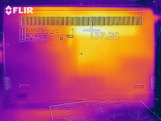 (+) Auf der Unterseite messen wir eine maximalen Wert von 37.4 °C (im Vergleich zum Durchschnitt von 36.8 °C).
