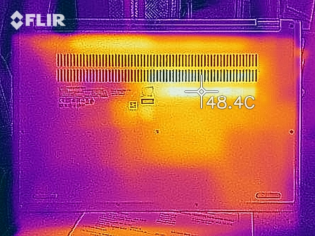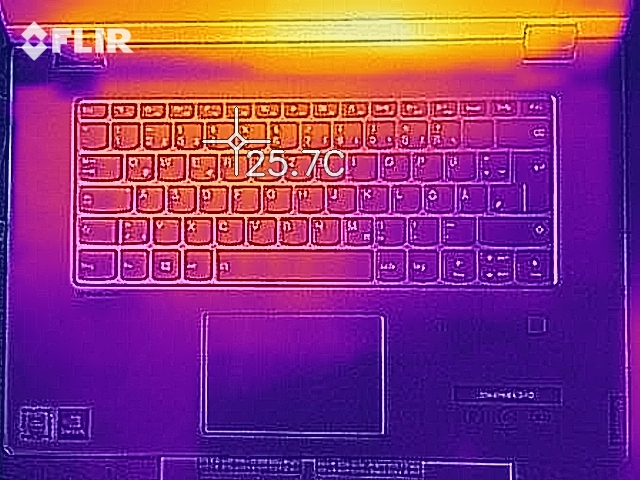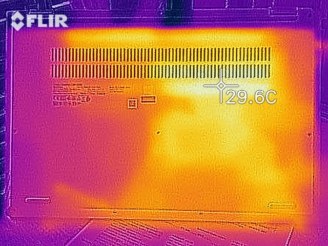 (+) Die Handballen und der Touchpad-Bereich sind mit gemessenen 29.3 °C kühler als die typische Hauttemperatur und fühlen sich dadurch kühl an.