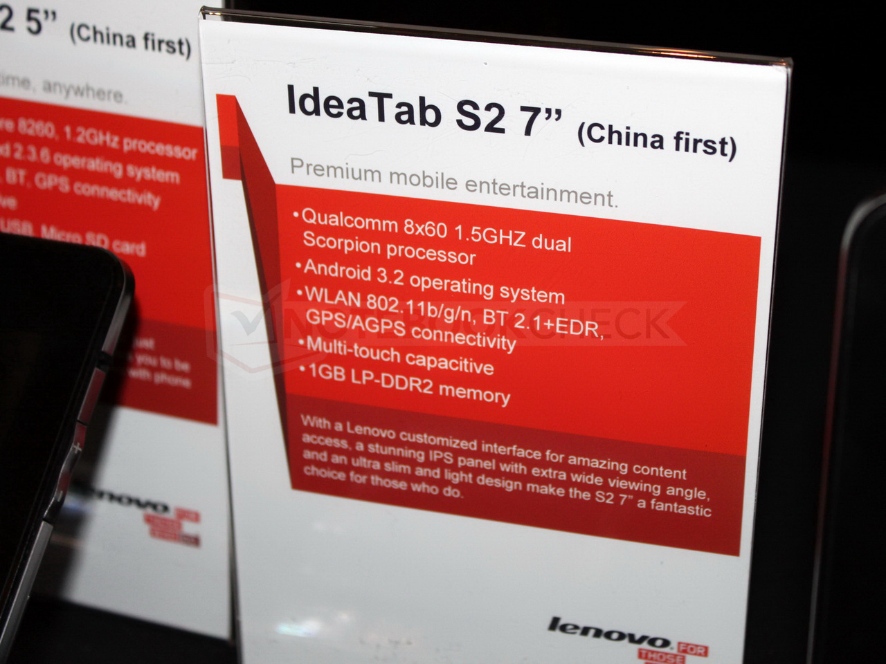 Während Lenovo sein 10,1-Zoll-Tablet Ideatab S2 10" auf der CES 2012 mit viel Tamtam angekündigt hat, zeigt der chinesische Computerriese einige weitere Tablets der Serie Ideatab S2 deutlich zurückhaltender und weniger lautstark. Der Grund hierfür dürfte sein, dass Lenovo die Modelle Ideatab S2 7" und das 5"-Modell zunächst lediglich in China auf den Markt bringen werden.