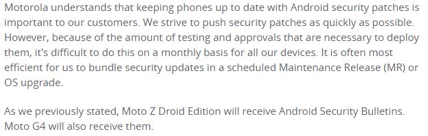 Ein offizielles Statement von Motorola, dem mittlerweile zu Lenovo gehörenden Smartphone-Produzenten der Moto-Serien gibt Anlass zu Kritik. Wie Ars Technica berichtet, will Motorola die monatlichen Android-Sicherheitsupdates von Google, wie in der Vergangenheit, auch zukünftig nicht monatlich an seine Kunden weitergeben sondern sammeln und zusammen mit Maintenance Releases (MR) oder Android OS-Upgrades ausliefern. Als Erklärung für diese Entscheidung gab Motorola an, ein monatliches Update aller Motorola-Geräte sei aufgrund der nötigen Test- und Abnahmeprozeduren zu schwierig umzusetzen. Ein Bündeln der Updates sei effizienter.