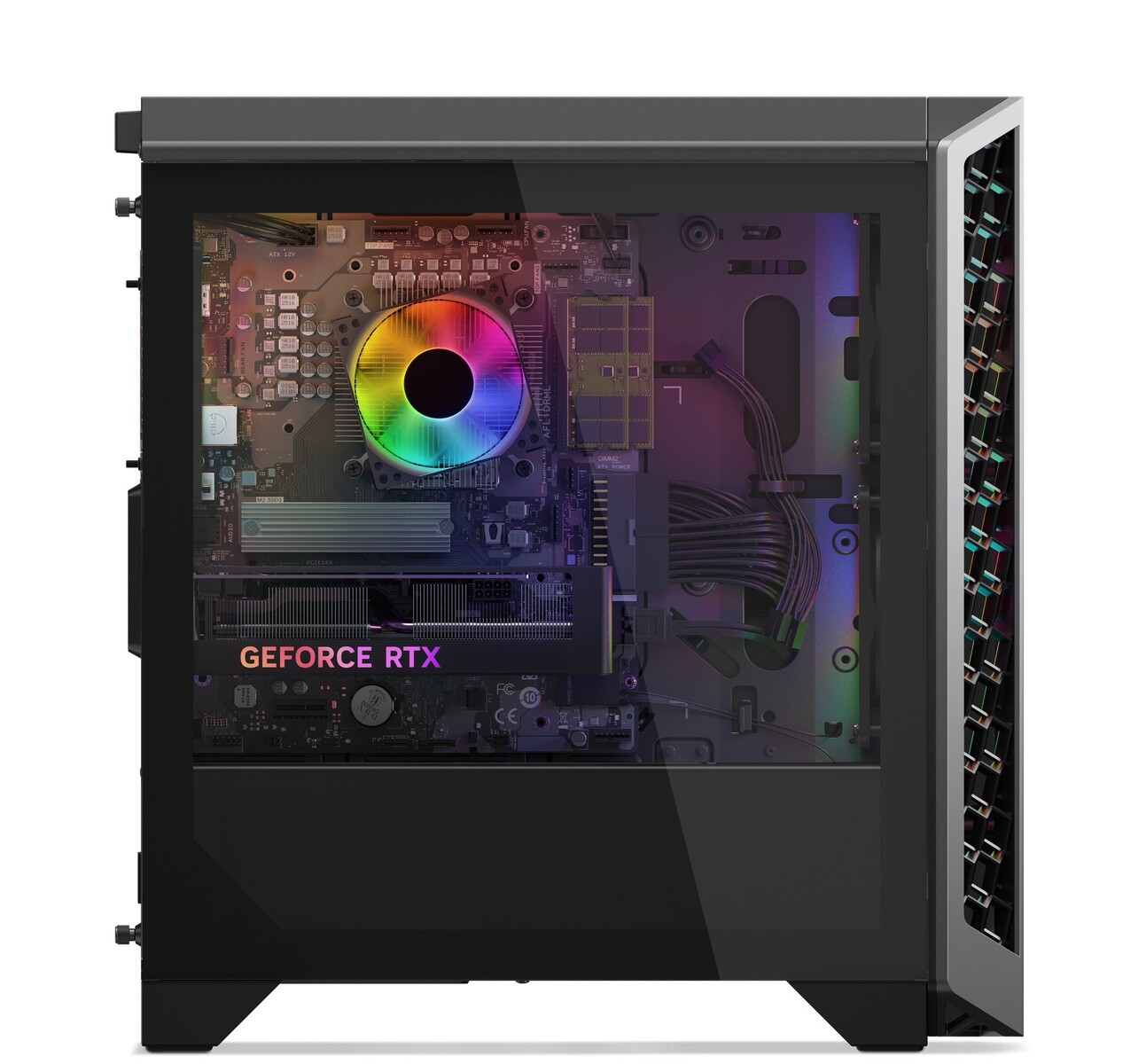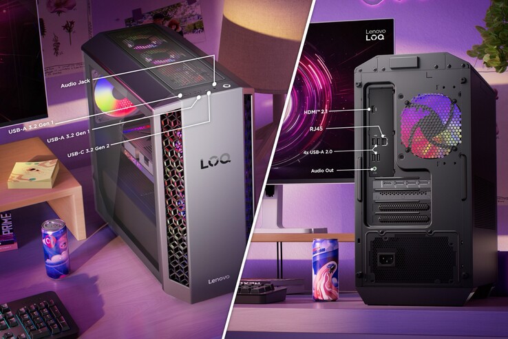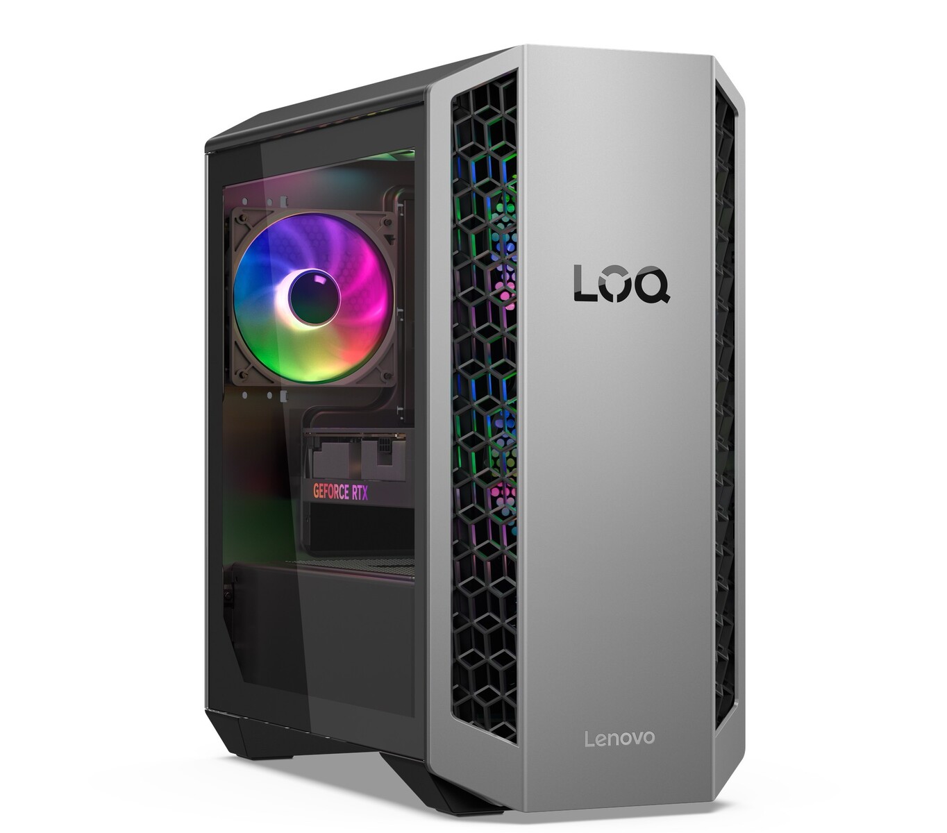 Lenovo stattet das Topmodell des LOQ Tower mit einem AMD Ryzen 7 8745HX und mit einer Nvidia GeForce RTX 5070 Ti (ca. 850 Euro auf Amazon) sowie mit einem 850 Watt Netzteil aus. Der Tower kann auf bis zu 64 GB DDR5-5.600-Arbeitsspeicher und zwei 2 TB M.2-2280-SSDs aufgerüstet werden, die beide per PCIe 4.0 angebunden werden. Lenovo betont, dass nachträgliche RAM- und SSD-Upgrades unkompliziert durchgeführt werden können. Das transparente Seiten-Fenster gehört zur Standardausstattung, ebenso wie die RGB-Beleuchtung.
