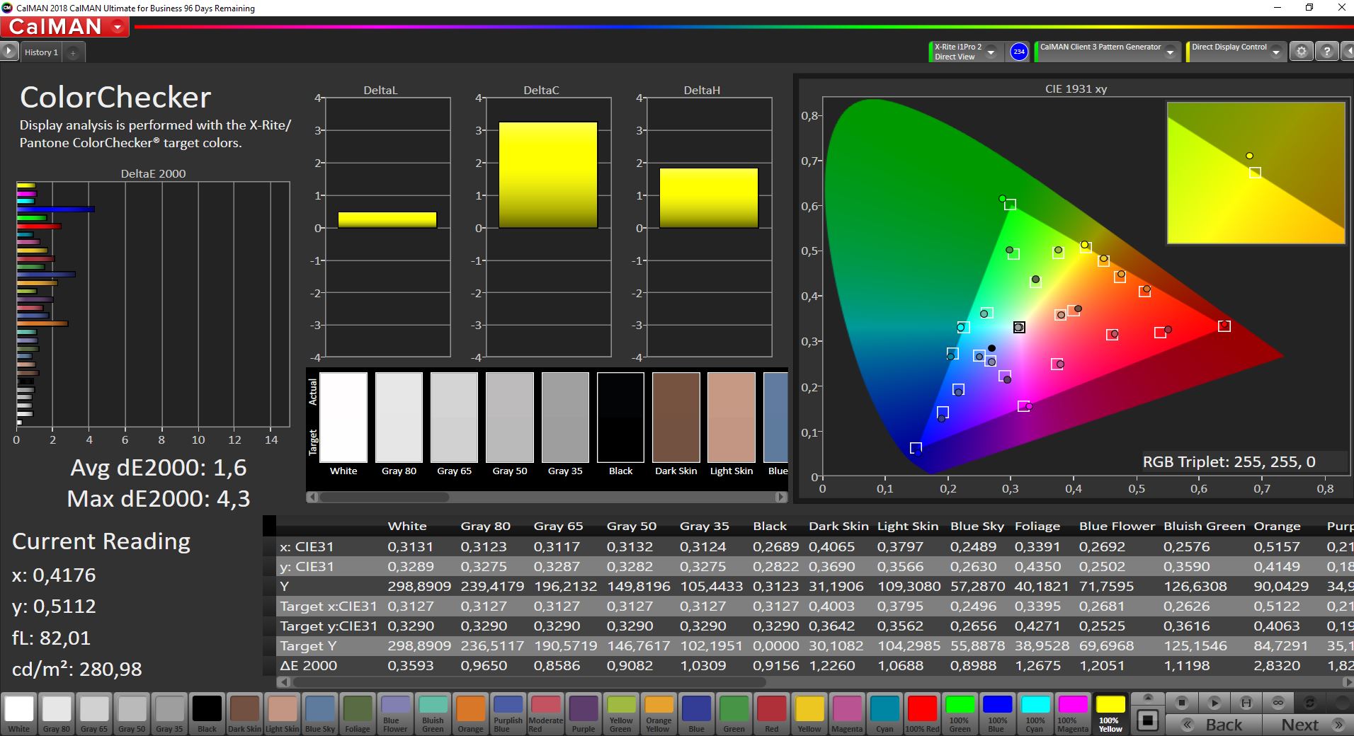 | Colorchecker dE 2000 calibrated * | 1.6 | 3.21 -101% | 1.63 -2% | 1.23 23% | |