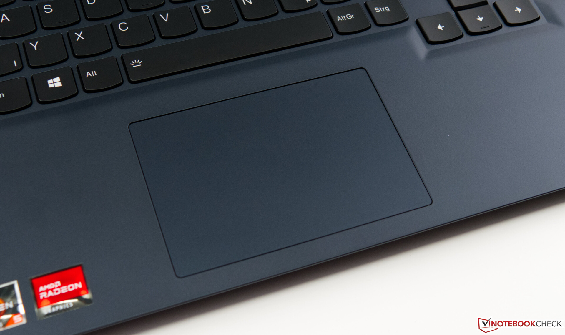 Das verbaute Touchpad bietet mit 7 x 10,5 Zentimeter die gleiche Größe wie beim Lenovo Legion 5 17. Allerdings wirkt dies beim 15-Zöller nicht ganz so verloren wie beim größeren Bruder. Die Eingabefläche ist sehr empfindlich und reagiert prompt auf Fingerbewegungen. Bei unserem Test-Sample konnten wir keine ungenau arbeitenden Bereiche feststellen. Im unteren Bereich befinden sich wie gewohnt die beiden Eingabetasten, welche beim Betätigen mit einem deutlich hörbaren Klicken auf sich aufmerksam machen.