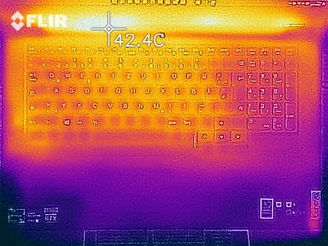 (±) Die maximale Temperatur auf der Oberseite ist 42.2 °C. Im Vergleich liegt der Klassendurchschnitt bei 40.4 °C (von 21.2 bis 68.8 °C für die Klasse Gaming).