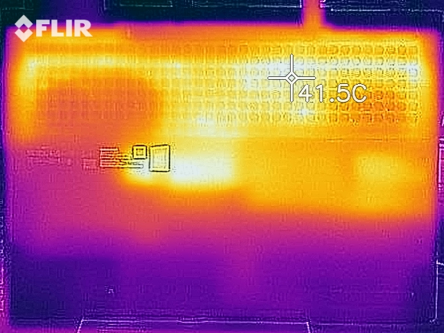 (+) Die Handballen und der Touchpad-Bereich sind mit gemessenen 25.6 °C kühler als die typische Hauttemperatur und fühlen sich dadurch kühl an.