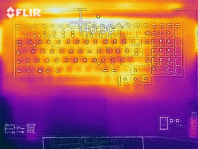 Grundsätzlich hat Lenovo die Temperaturen beim Legion 5 17 sehr gut unter Kontrolle. Auch bei den Gehäusetemperaturen messen wir mit maximal 51 °C keinen kritischen Wert. Das haben wir schon weitaus schlimmer gesehen. Dennoch würden wir von einem Betrieb auf dem Schoß abraten, um die Frischluftzufuhr nicht zu beeinträchtigen. Das SoC erreicht beim Stresstest 92,5 °C, wenngleich wir bei der GPU maximal 73,3 °C notieren. Das sind alles unkritische Werte, weshalb das Lenovo Legion 5 17 auch bei den schon vorab durchgeführten Lasttests (z. B.: Cinebench-R15-Multi-Schleife und Witcher 3) keine Leistungseinbußen zeigte.
