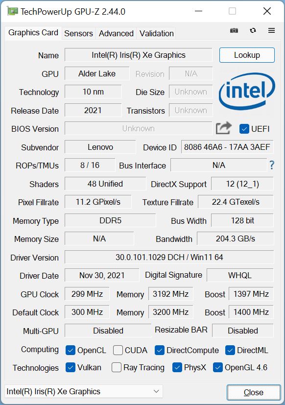 Neben dem Gigabit-Ethernet-Anschluss für kabelgebundene Netzwerke setzt Lenovo ein AX201-WLAN-Modul von Intel ein. Dieses unterstützt den Wi-Fi-6-Standard (802.11ax) sowie Bluetooth 5.1, aber noch nicht den aktuellsten Wi-Fi-6E-Standard (6 GHz). In unserem Test mit dem Referenzrouter Netgear Nighthawk AX12 sind die Transferraten exzellent und wir konnten auch sonst keine Probleme mit der Signalqualität erkennen.