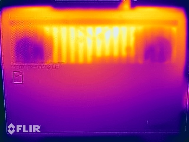 Bereits im Leerlauf steigt die Temperatur an einigen Stellen auf etwas mehr als 30 °C, Einschränkungen bei alltäglichen Dingen gibt es dadurch allerdings nicht. Beim Spielen messen wir aber fast 60 °C auf der Unterseite der Baseunit und man sollte das Gerät nicht auf den Oberschenkeln abstellen. Die Tastatur erwärmt sich ebenfalls deutlich und es wird beim Zocken warme Finger geben. Im Stresstest arbeitet die GPU mit 125 Watt und der Prozessor pendelt sich recht schnell bei 62 Watt ein.