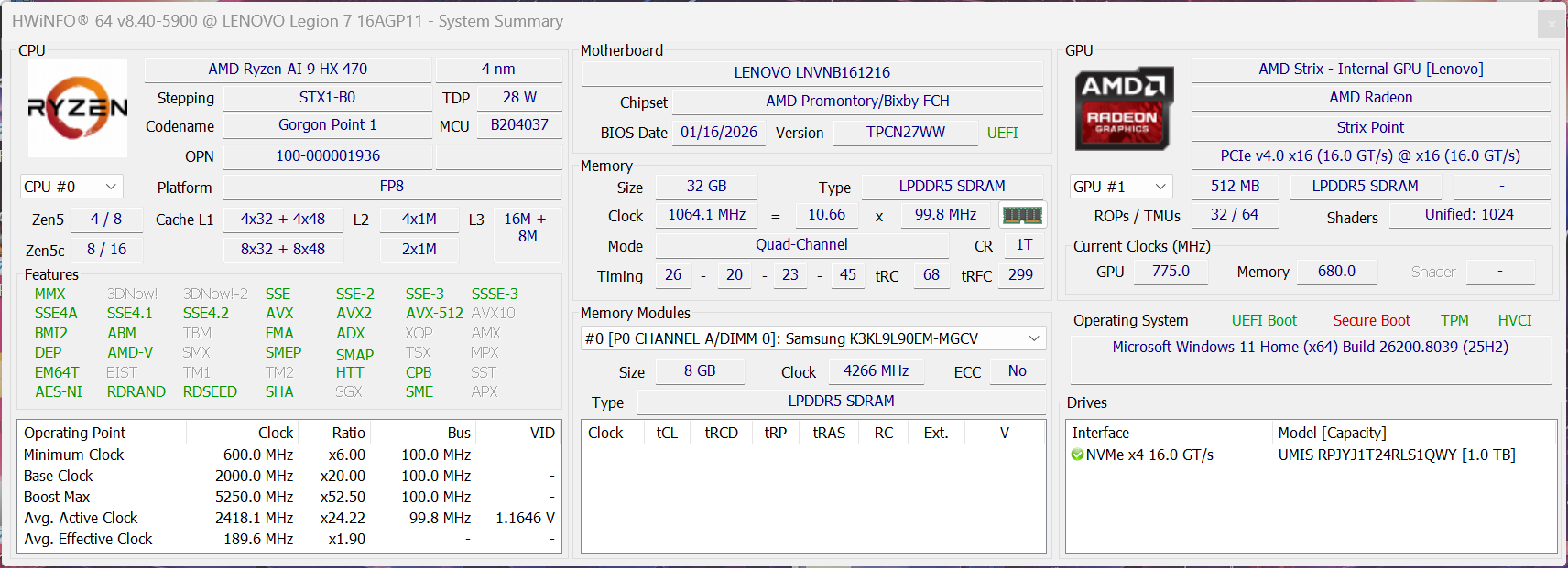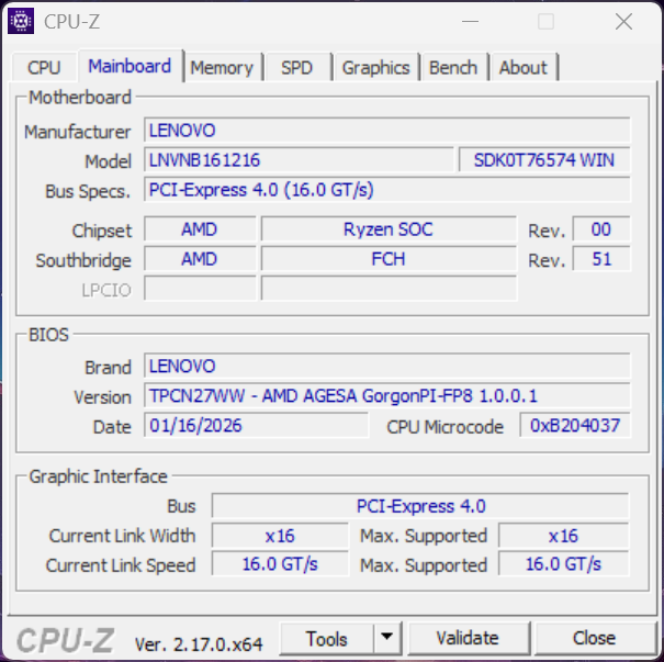 | Lenovo Legion 7 16 AGP11 (Angelbird AV Pro V60) | |