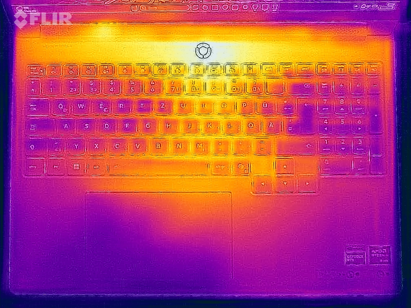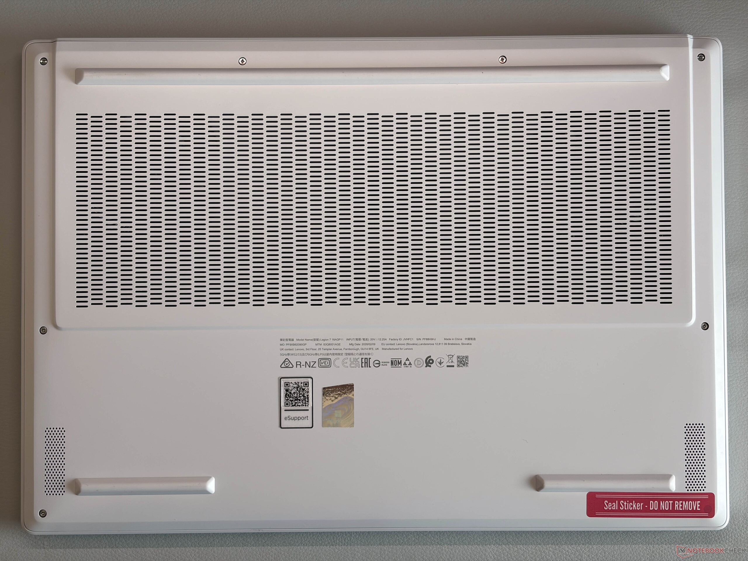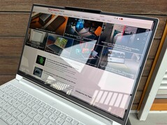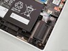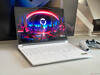 Unser weißes Testgerät sieht sehr schön aus, und die Aluminiumoberflächen ziehen Fingerabdrücke und Schmutz nicht wirklich an, so dass es sehr leicht sauber zu halten ist. Die Beleuchtungselemente sind auf ein Minimum beschränkt. Das geringere Gewicht wirkt sich nicht auf die Stabilität aus, das neue AMD Modell ist genauso stabil wie zuvor. Die Scharniere (maximaler Öffnungswinkel 180 Grad) sind ebenfalls gut eingestellt und halten das Aufprallen auf ein Minimum. Die Wartungsmöglichkeiten beschränken sich auf die M.2-2242-SSD, einen freien M.2-2280-Steckplatz, das Wi-Fi-Modul sowie die Reinigung der Lüfter, während der Arbeitsspeicher verlötet ist.