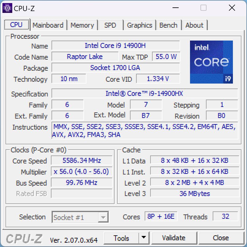 Der i9-14900HX ist eine High-End-CPU der aktuellen Raptor-Lake-Refresh-Serie von Intel. Die 8 P-Kerne takten mit bis zu 5,8 GHz, der Basistakt der 16 E-Kerne liegt bei 1,6 GHz. Zusammen können sie bis zu 32 Threads bearbeiten.
