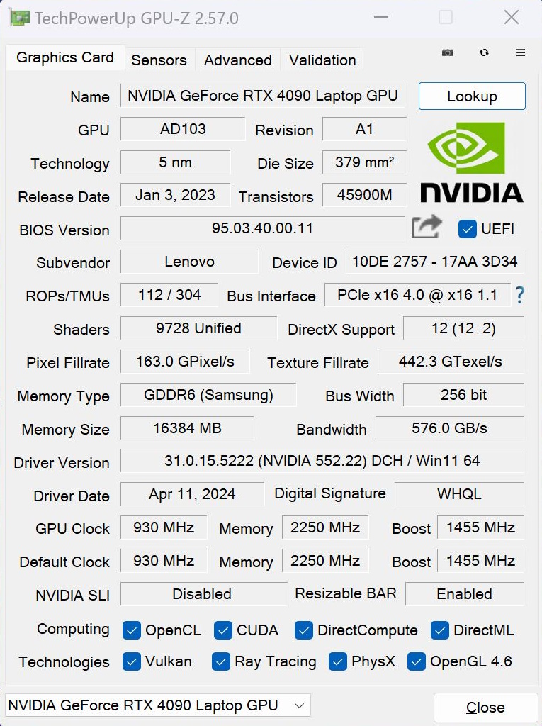 | Lenovo Legion 9 16IRX9, RTX 4090 | |