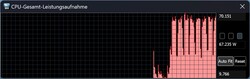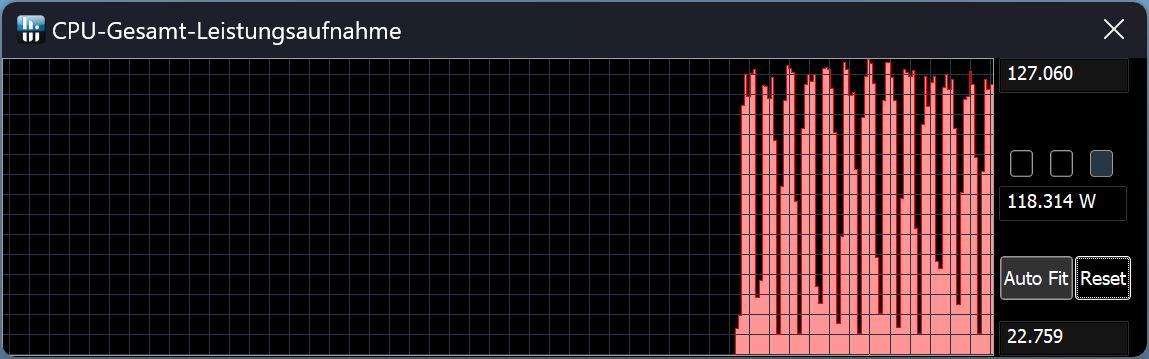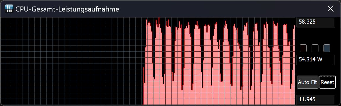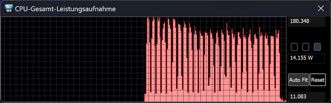 Bei den Verbrauchsgraphen zeigt sich wieder das vermeintliche Problem des neuen Legion 9, denn immer mal wieder bricht der Verbrauch, und damit eben auch die Leistung, ganz kurz ein und zwar über diverse Tests hinweg. Was beim Cinebench 23 noch normal ist, ist es bei Witcher 3 oder Furmark nicht.