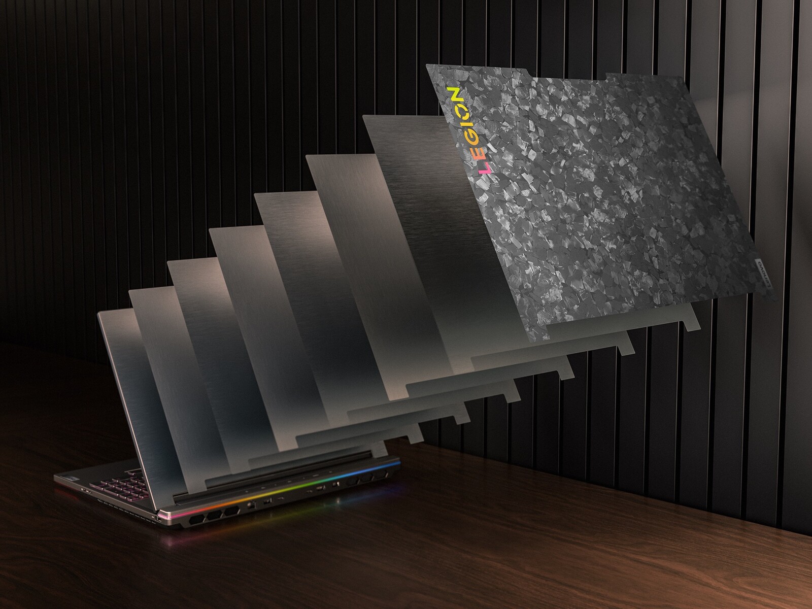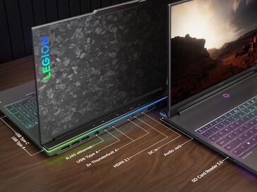 Geladen wird wahlweise über das mitgelieferte 330 Watt Netzteil, oder alternativ mit bis zu 140 Watt über USB-C Power Delivery. Eine Tastatur mit RGB-Beleuchtung, eine 1.080p-Webcam, 2 x 2 Watt Stereo-Lautsprecher und ein 99,99 Wh Akku runden die Ausstattung ab. Ein Display-Deckel aus Carbon verleiht dem Legion 9i einen auffälligen Look. Trotz der mächtigen Ausstattung ist der Laptop mit einer Bautiefe von maximal 2,27 Zentimetern relativ dünn, das Gerät wiegt 2,56 Kilogramm.