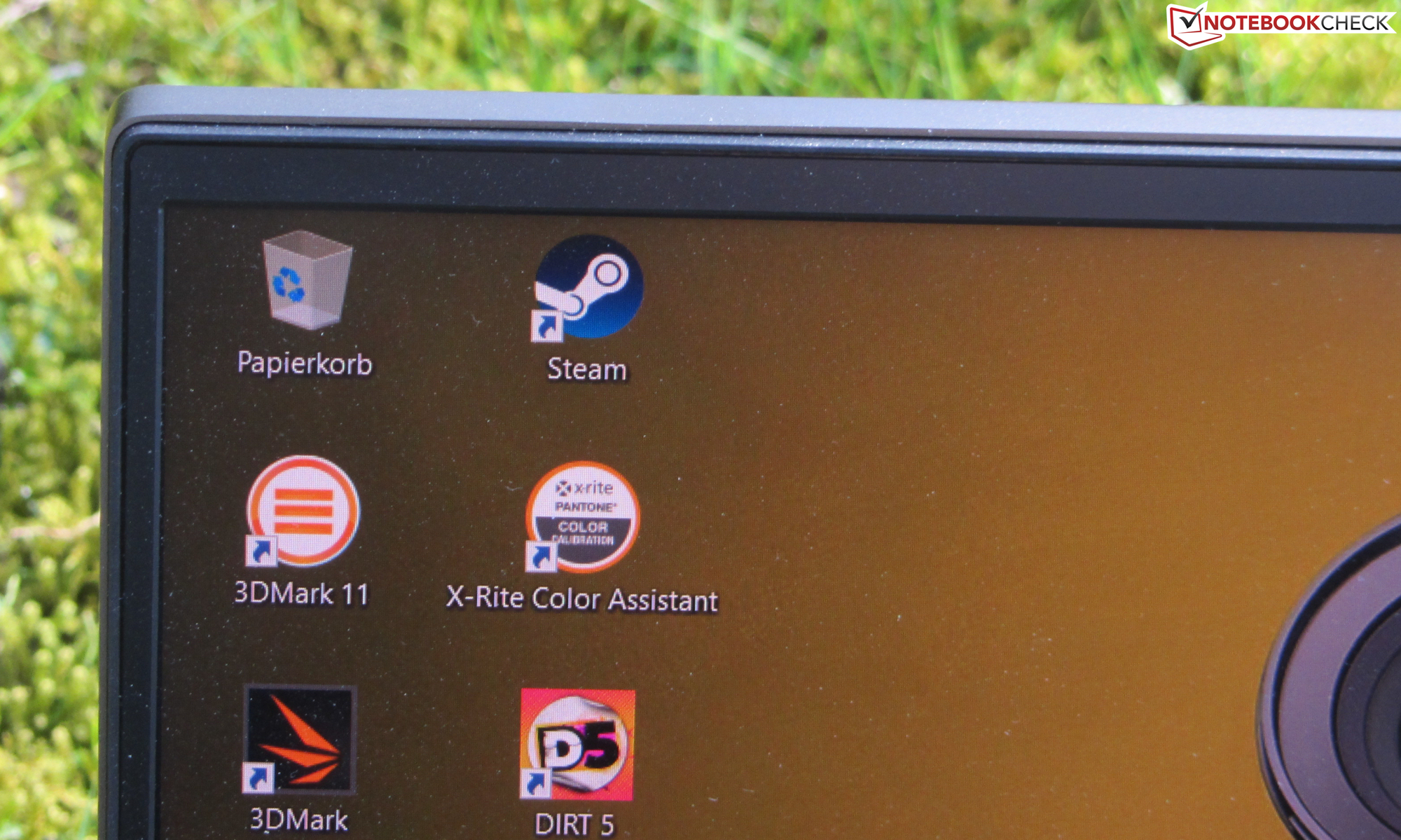 Kontrast (1.048:1) und Helligkeit (414,4 cd/m²) des matten 15,6-Zoll-Bildschirms (1.920 x 1.080 Bildpunkte) fallen gut bzw. sehr gut aus. Im Akkubetrieb sinkt die Maximalhelligkeit auf 358 cd/m². Das 144-Hz-Panel wartet mit schnellen Reaktionszeiten auf. Positiv: Das Display zeigt kein PWM-Flimmern. Der Bildschirm unterstützt Dolby Vision - eine HDR-Variante.