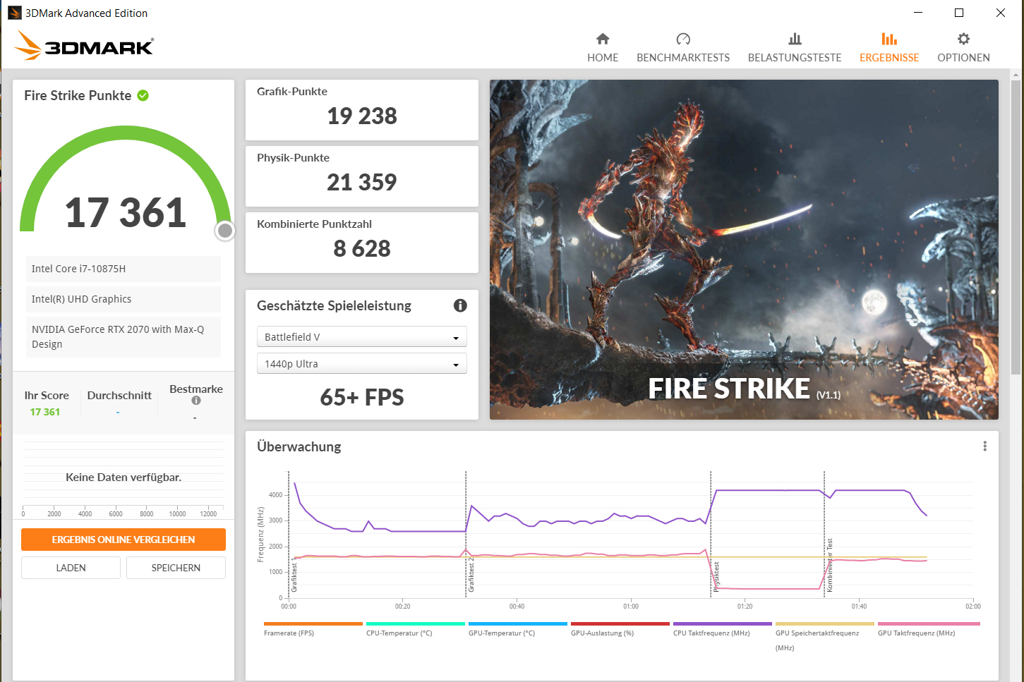 | Durchschnittliche NVIDIA GeForce RTX 2070 Max-Q (61.6 - 85.3, n=11) | |