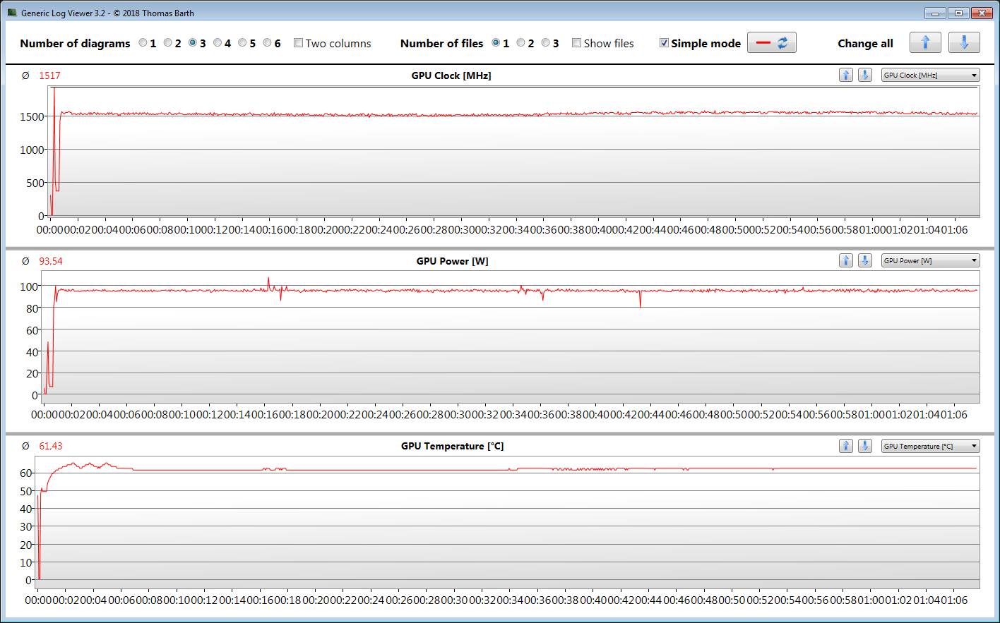 Um zu überprüfen, ob die Bildwiederholraten über einen längeren Zeitraum weitgehend konstant bleiben, lassen wir das Spiel "The Witcher 3" für etwa 60 Minuten mit Full-HD-Auflösung und maximalen Qualitätseinstellungen laufen. Die Spielfigur wird nicht bewegt. Ein Einbruch der Bildwiederholraten ist nicht festzustellen.