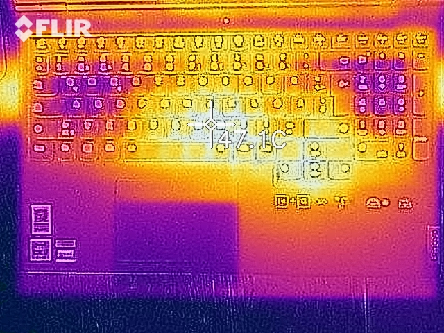 (+) Die Handballen und der Touchpad-Bereich sind mit gemessenen 30.6 °C kühler als die typische Hauttemperatur und fühlen sich dadurch kühl an.