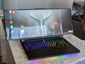 Lenovo nutzt gleich zwei Motoren, um das Display sowohl an der linken als auch an der rechten Seite auszurollen, da das Display stets gespannt wird, sollen keine Falten sichtbar sein. Wie unsere Hands-on-Fotos aber zeigen, ist an der Kante, an welcher das Display erweitert wird, ein leichter Falz zu sehen. Durch diesen Mechanismus wird das Notebook zwar etwas dicker und schwerer, bleibt aber annähernd so kompakt wie das Legion Pro 7i, auf dem der Konzept-Laptop basiert.
