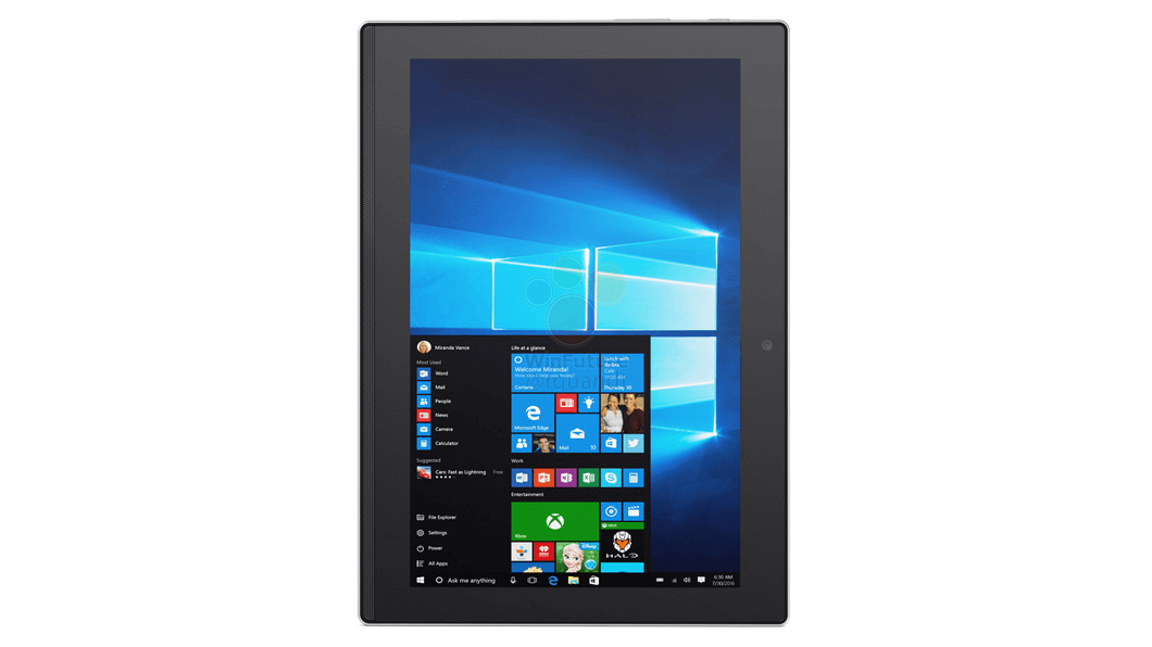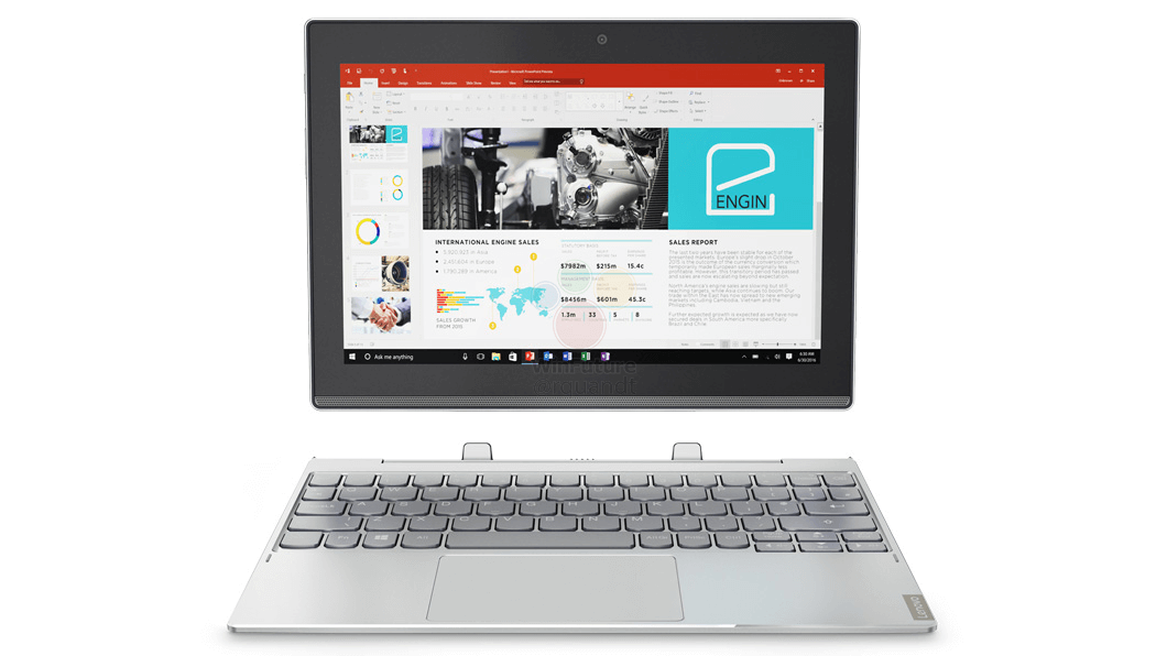 Es gibt einen USB-C-Port mit USB 3.0 Geschwindigkeit sowie Micro-HDMI und zwei USB 2.0-Anschlüsse im Keyboard-Dock. Optional gibt es zusätzlich zu Dual-Band WLAN nach 802.11ac und Bluetooth 4.2 auch Versionen mit LTE-Modem an Bord. Die Akkulaufzeit soll maximal 10 Stunden betragen, das Tablet ist 9 mm dick, die Tastatur 8,5 mm. Das Gesamtgewicht kommt auf 1020 Gramm. Laut Winfuture, die das Gerät bereits bei amerikanischen Händlern gesichtet haben, wird Lenovo knapp 230 US-Dollar für die Einstiegsvariante mit 2 GB RAM, 64 GB Speicher und Windows 10 Home verlangen.