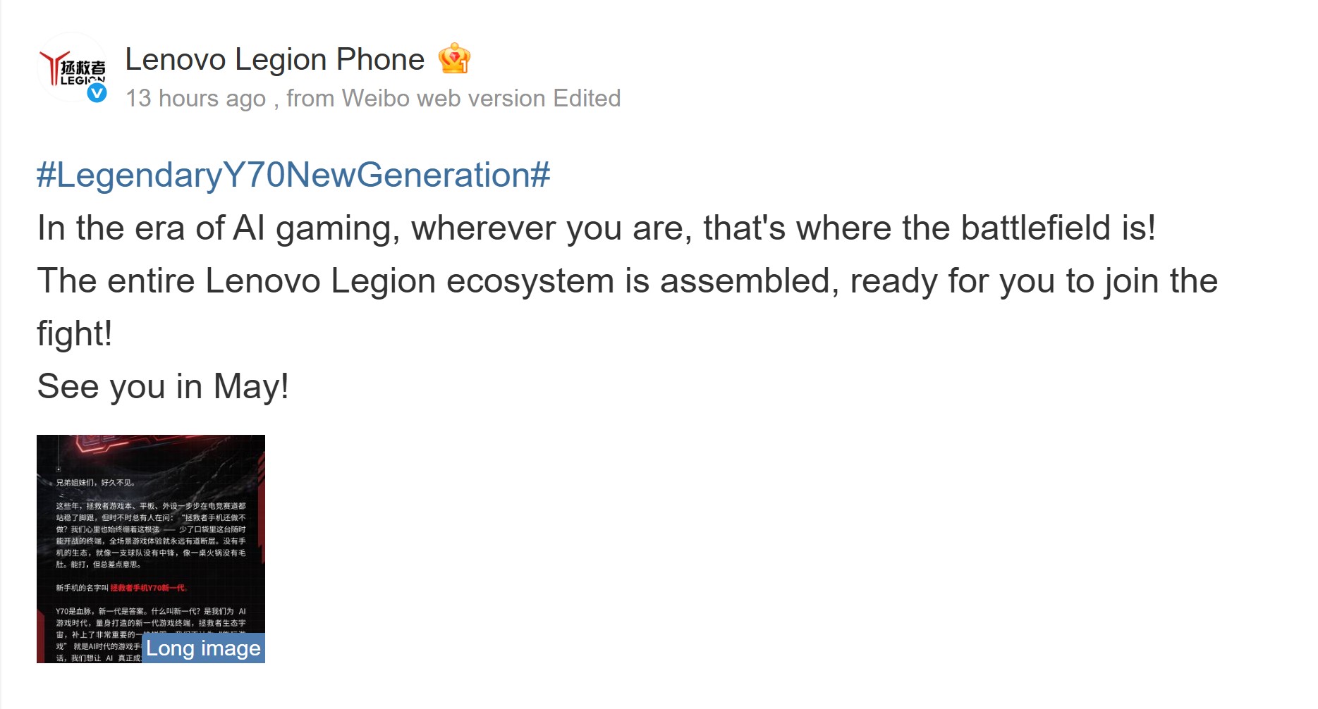 Mit einer wenig überraschenden Ankündigung hat das Unternehmen jetzt bestätigt, dass in Kürze ein neues Legion-Gaming-Smartphone präsentiert wird. Viel hat die Marke noch nicht verraten, angeteasert wurde aber bereits ein Marktstart im Mai 2026.