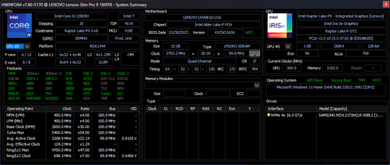 | Lenovo Slim Pro 9i 16IRP8 (PNY EliteX-Pro60 V60 256 GB) | |