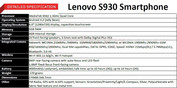 Das S930 Smartphone ist Lenovos neues 6 Zoll großes Phablet mit HD-Display (1.280 x 720 Pixel). Angetrieben wird das 170 Gramm schwere und 8,7 Millimeter flache Riesensmartphone von einem MediaTek MT6582 (1,3 GHz) Quadcore-Prozessor, der von 1 GByte RAM und 8 GByte internem Speicher flankiert wird. Als OS läuft Android in Version 4.2 Jelly Bean. WLAN 802.11b/g/n, Bluetooth 3.0, zwei Kameras (8 MP hinten, 1,6 MP vorne), 2 Lautsprecher an der Vorderseite, Dual SIM, GPS, FM-Radio sowie ein 3.000 mAh starker Lithium-Polymer-Akku runden die Ausstattung des Lenovo S930 Smartphones ab.