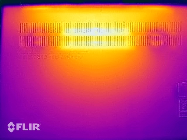 Aufgrund der Leistungsreduzierung nach einigen Minuten sind die Oberflächentemperaturen vollkommen unbedenklich, selbst im Stresstest. Wir messen lediglich auf der Unterseite etwas mehr als 40 °C, die Nutzung ist hier also auch auf den Oberschenkeln problemlos möglich. Die Lüfter sind bei Last mit 42 dB(A) deutlich hörbar, störender ist allerdings, dass die Lüfter auch bei wenig Last immer mal wieder anspringen, was etwas unruhig wirkt. Sonstige elektronische Geräusche gibt es aber nicht.