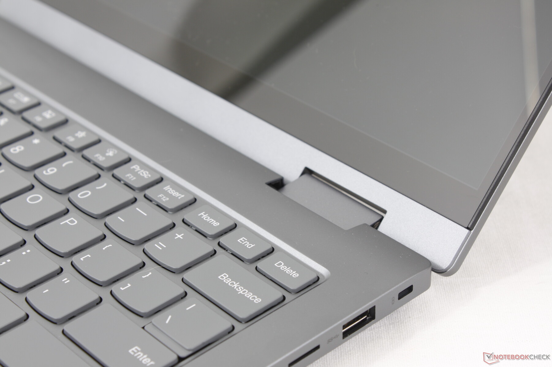 Alle Anschlüsse des Modells aus dem Jahr 2021 sind in dieser neuesten Version wieder vorhanden, wenn auch in veränderter Anordnung. Die Lenovo OneKey-Recovery-Taste befindet sich beispielsweise jetzt an der Unterseite statt am linken Rand. Wir schätzen auch, dass die Anschlüsse gut verteilt sind, während sie beim VivoBook Flip 14 oder Aspire 5 Spin 14 enger und überfüllter sind.