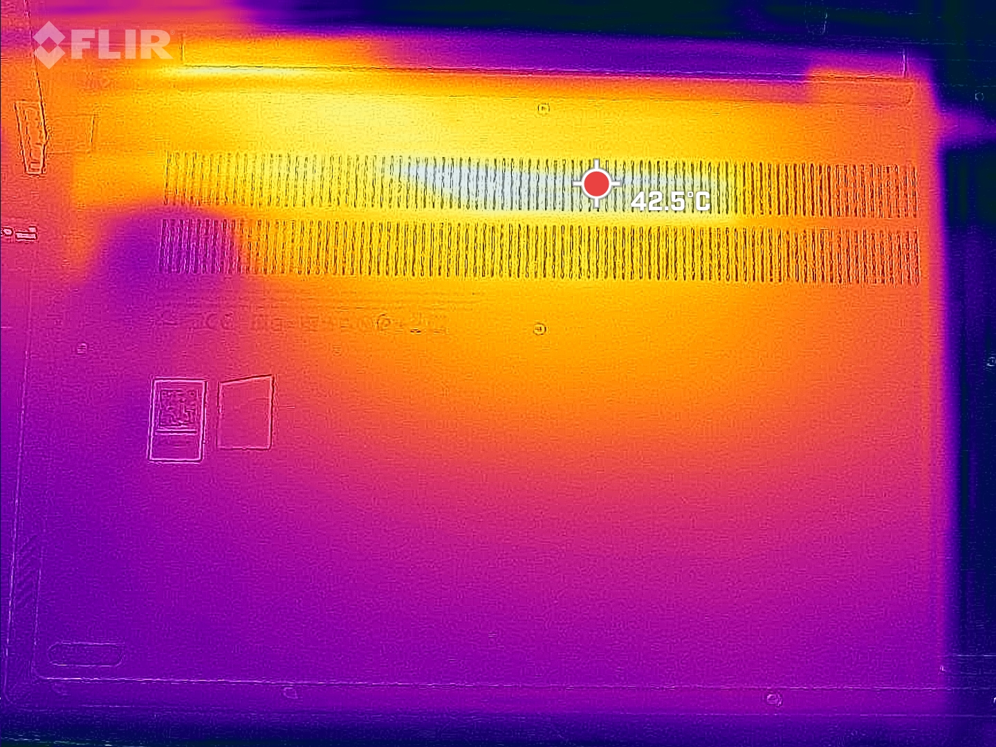 (±) Auf der Unterseite messen wir eine maximalen Wert von 42.8 °C (im Vergleich zum Durchschnitt von 36.8 °C).