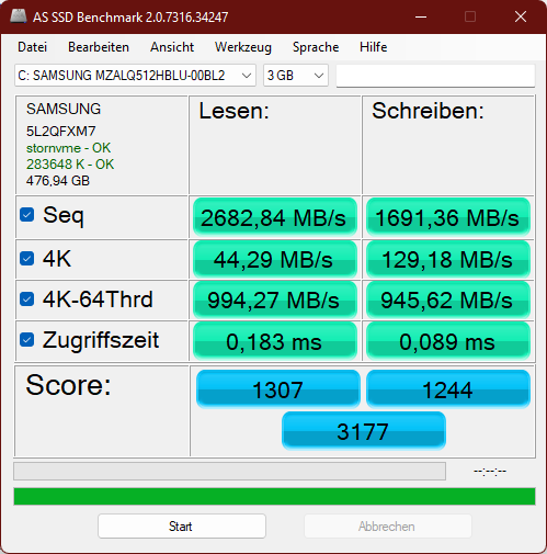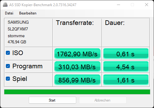 Der SD-Kartenleser am ThinkBook kann gute Geschwindigkeiten mit unserer Referenzkarte erreichen. Die AV PRO microSD 128 GB V60 wäre jedoch auch zu höheren Übertragungsgeschwindigkeiten fähig.