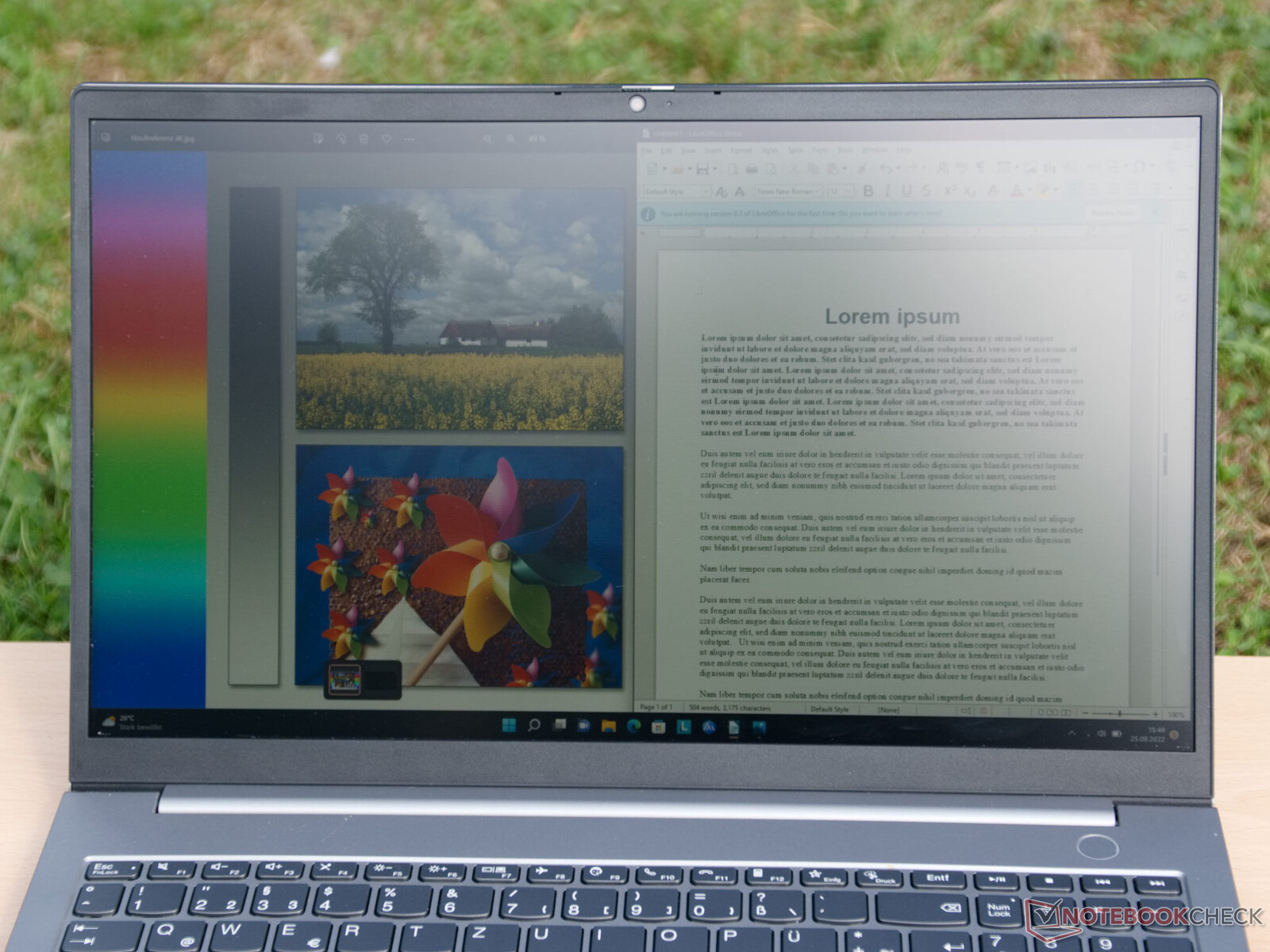 Der Bildschirm des ThinkBook 14 G4 ist etwas schwach in vielen Werten. Farbraumabdeckung, Farbabweichungen, Kontrastwerte, und Displayhelligkeit könnten allesamt besser sein. Aber die Werte entsprechen den Anforderungen an einen Büro-Laptop. So erfüllt der matte Bildschirm seinen Zweck.