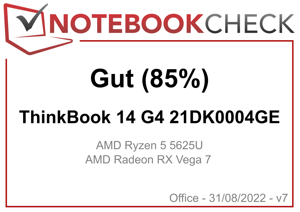 | 84.6 % v7 (old) | 09 / 2022 | Lenovo ThinkBook 14 G4 21DK0004GE R5 5625U, Vega 7 | 1.5 kg | 22 mm | 14.00" | 1920x1080 | |