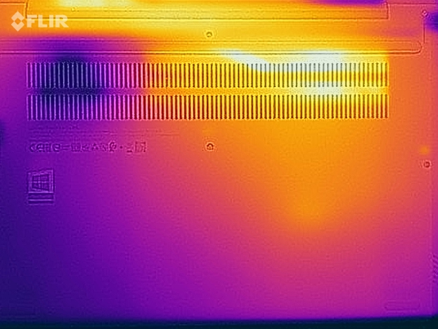 (-) Auf der Unterseite messen wir eine maximalen Wert von 45.9 °C (im Vergleich zum Durchschnitt von 36.8 °C).