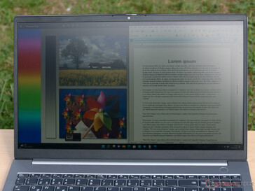 Das matte Bildpanel mit 60 HZ Bildrate und Full-HD-Auflösung(1920 × 1080 Pixel) im Lenovo ThinkBook 15 G4 kommt auf eine durchschnittliche Helligkeit von 300 cd/m². Wirklich gut ist der 16:9-Bildschirm hier zwar nicht, aber er erfüllt die Anforderungen an einen Büro-Laptop. Ein ordentlicher Kontrast zwischen Schwarz und Weiß sorgt für ein ermüdungsfreies Arbeiten.
