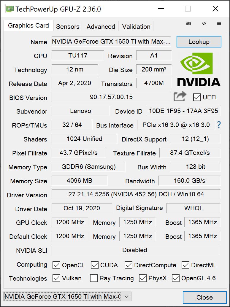| 90.1 % v7 (old) | 01 / 2021 | Lenovo ThinkPad X1 Extreme Gen3-20TLS0UV00 i7-10750H, GeForce GTX 1650 Ti Max-Q | 1.7 kg | 18.7 mm | 15.60" | 1920x1080 | |
