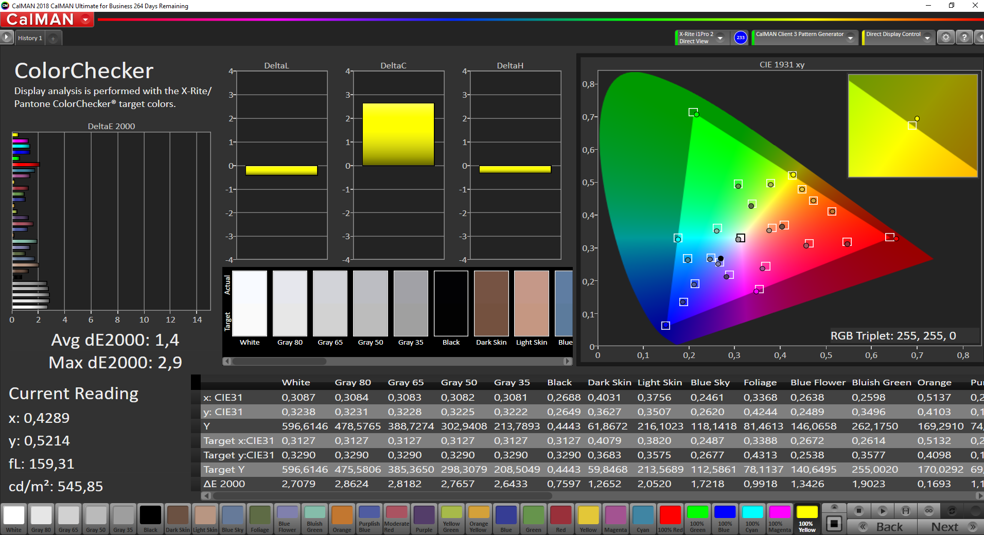 ΔE ColorChecker Calman: 1.4 | ∀{0.5-29.43 Ø4.78}