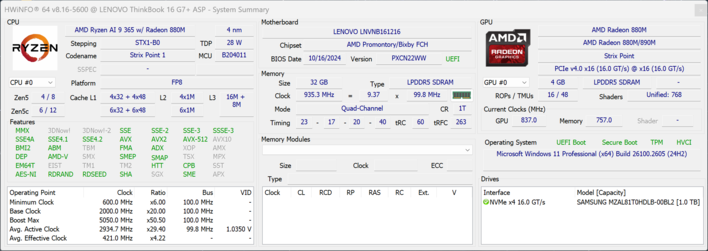 | Lenovo ThinkBook 16 G7+ AMD AMD Ryzen AI 9 365 ⎘ AMD Radeon 880M ⎘ 32 GB RAM, 1024 GB SSD | Amazon: 1. 49,99 € K KYUER 45Wh L22D3PE0 L22B3P... 2. 25,99 € mCover Nur kompatibel mit Le... 3. 57,16 € Berfea Schutzhülle für Len... Listenpreis: 1399€ | 1.9 kg | 16.9 mm | 16.00" 3200x2000 236 PPI IPS | |