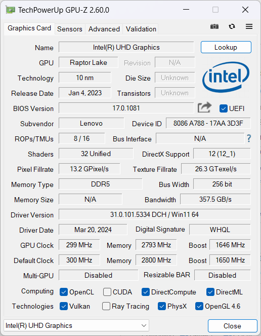 | Lenovo ThinkBook 16p G5 IRX 21N50011GE GeForce RTX 4060 Laptop GPU, i9-14900HX, SK Hynix HFS001TEJ9X115N | Lenovo ThinkBook 16p G3 ARH GeForce RTX 3060 Laptop GPU, R9 6900HX, Micron 3400 1TB MTFDKBA1T0TFH | Asus ProArt P16 H7606WI GeForce RTX 4070 Laptop GPU, Ryzen AI 9 HX 370, Micron 2400 MTFDKBA1T0QFM | Honor MagicBook Pro 16 2024 GeForce RTX 4060 Laptop GPU, Ultra 7 155H, WD PC SN740 SDDPNQD-1T00 | Framework Laptop 16 Radeon RX 7700S, R9 7940HS, WDC PC SN810 1TB | Lenovo ThinkPad P1 Gen 7 21KV001SGE GeForce RTX 4060 Laptop GPU, Ultra 7 155H, Kioxia XG8 KXG8AZNV1T02 | |