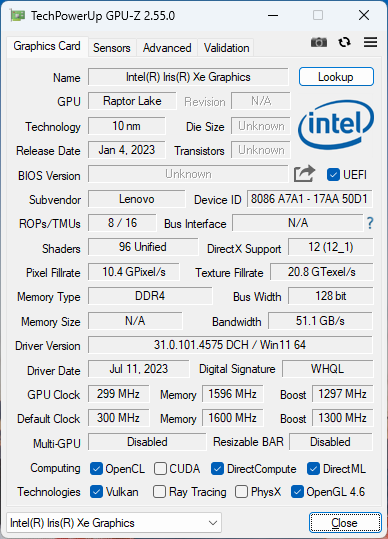 Während unser AMD-Gerät mit dem 1400p-Panel konfiguriert war, verfügt unser Intel-Gerät über die fettgedruckte Option. Wir empfehlen das 1400p-Panel, wenn Ihre Arbeitslasten genauere Farben und ein höheres Kontrastverhältnis erfordern. Ansonsten scheinen andere Eigenschaften wie Helligkeit und Schwarz-Weiß-Reaktionszeiten bei allen Optionen gleich zu sein.