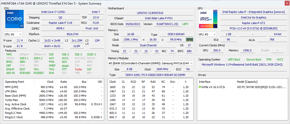 | Lenovo ThinkPad E14 G5 i7-1355U | |