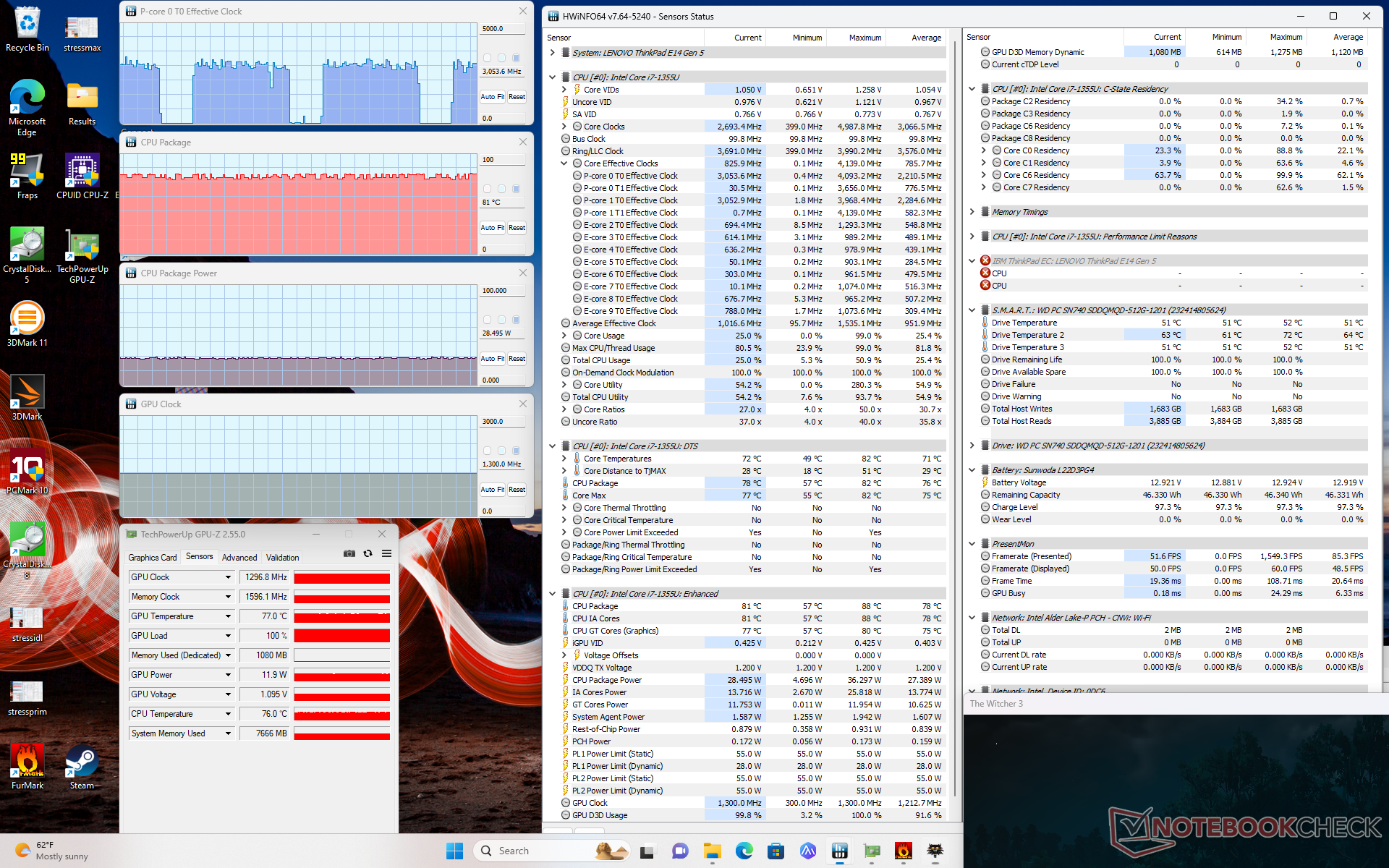 | Witcher 3 Stresstest | ~3.0 | 1300 | 81 |