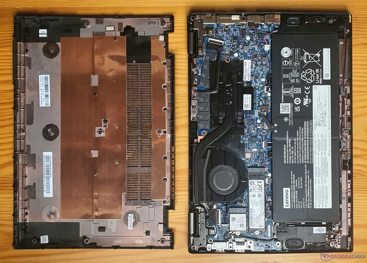 Austauschbar sind hier: Wi-Fi, die M.2-2280-SSD sowie der Akku. RAM-Slots sowie einen Slot für WWAN gibt es nicht. Der Lüfter ist zwecks Reinigung gut erreichbar.