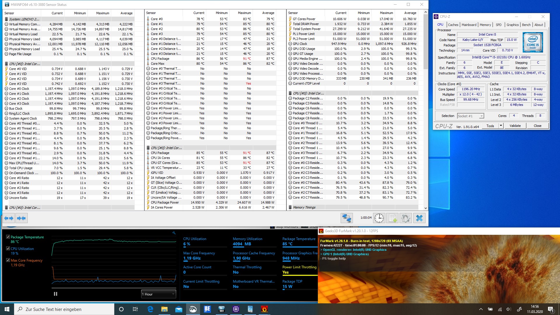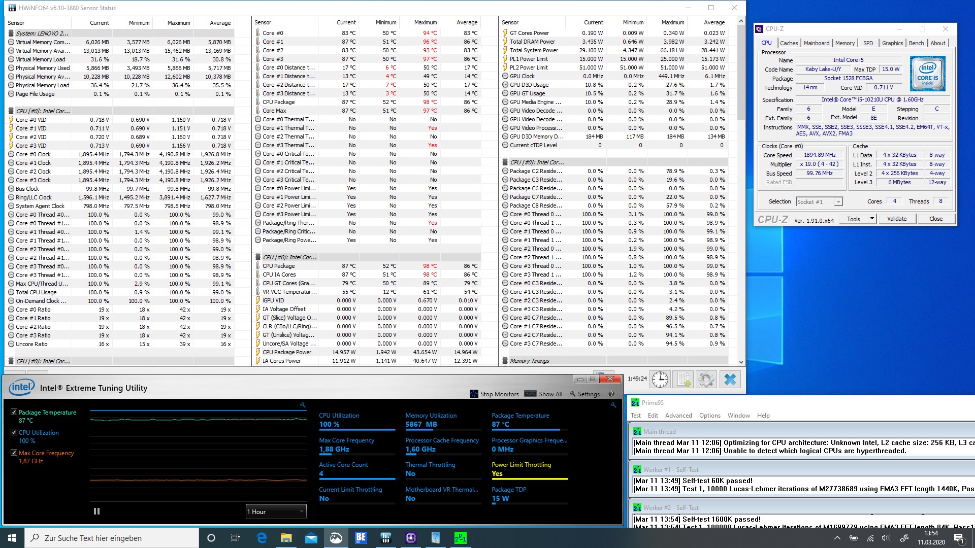 Der zum Einsatz kommende Intel Core i5-10210U arbeitet mit einer TDP von 15 Watt und bietet vier native Rechenkerne. Unter Last darf sich das SoC kurzzeitig bis zu 51 Watt genehmigen. Bei den CPU-Tests konnte das Lenovo ThinkPad L13 Yoga allerdings nicht die volle Leistung des SoC abrufen. Das Lenovo Yoga C740 ist mit dem gleichen SoC deutlich schneller unterwegs.