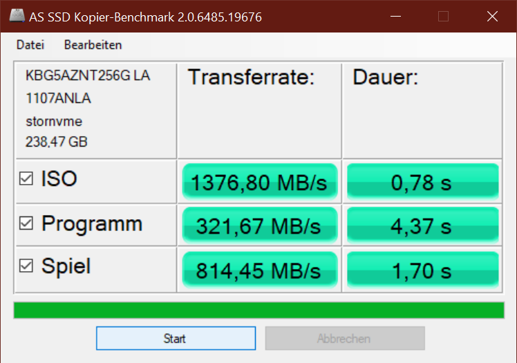 Das ThinkPad L14 erreicht mit der AV PRO microSD 128 GB V60 Referenzkarte durchschnittliche Geschwindigkeiten. Deutlich besser bewerkstelligt diese Aufgabe Dells Latitude 14 5420 mit zwei- bis dreifachen Transerraten.