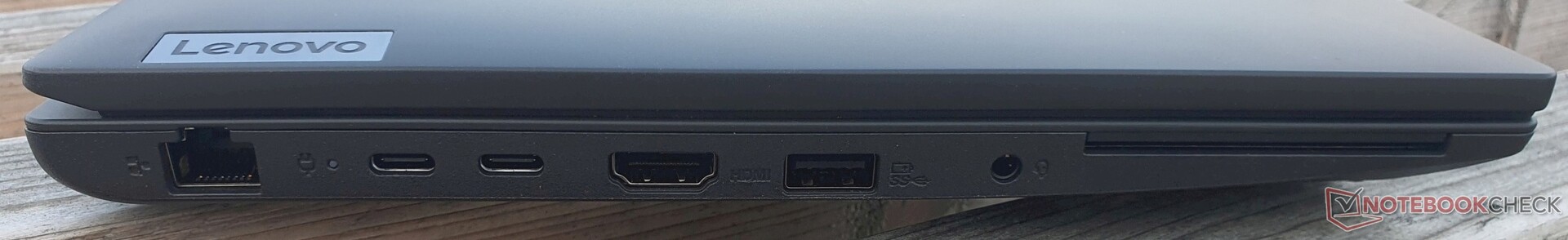 Nicht viel getan hat sich bei der Anschlussausstattung, was gut ist. Denn neben HDMI 2.0, microSD-Kartenleser und RJ45 (GBit), das erfreulicherweise nach hinten gerutscht ist, sind gleich vier USB-Anschlüsse vorhanden: 2x USB-C (max. 10 GBit/s), je mit PD 3.0 und DisplayPort 1.4, und 2x USB-A 3.2 Gen 1. Auf Thunderbolt/USB 4 muss verzichtet werden.
