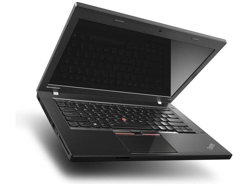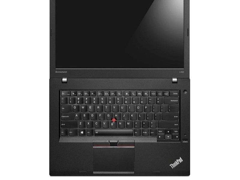 Modell: Das Lenovo ThinkPad L450-20DT0001GE ist ein Allround-Business-Gerät mit einer soliden Verarbeitung. Das Design folgt der klassischen ThinkPad-Serie mit klaren Kanten und einer matt-schwarzen, kratzfesten Oberfläche. Die eingebauten Scharniere sind langlebig und halten den Bildschirm gut in Position. Das zu einem konkurrenzfähigen Preis angebotene Lenovo ThinkPad L450-20DT0001GE ist ultra-leicht und wurde gegen Militär-Standards getestet. Seine spritzwassergeschützte Tastatur in voller Größe sorgt für ein ausgezeichnetes Tippgefühl und das Touchpad ist komfortabel. Das entspiegelte, 14-Zoll-Display mit Full-HD-Auflösung (1920 x 1080 pixels) ist hell und scharf.